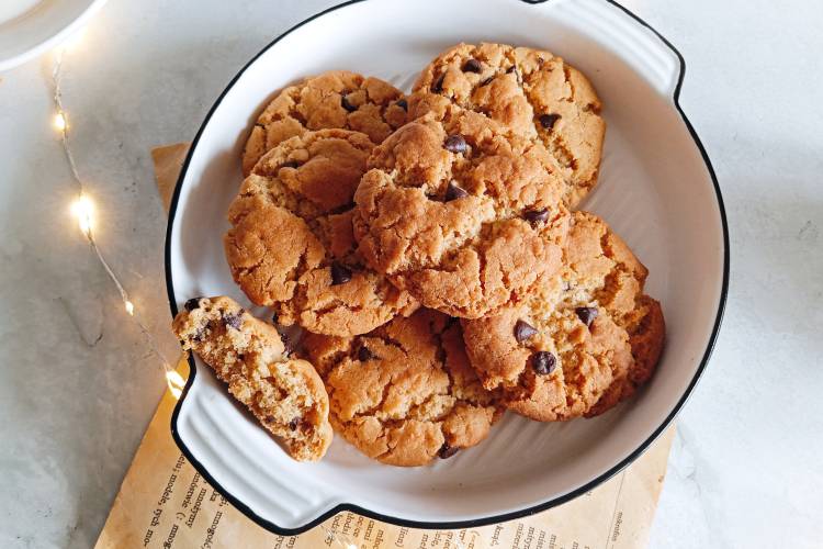 - Blachę z ciasteczkami wstawić do piekarnika i piec prze ok. 15 minut, aż na na obrzeżach i na wierzchu ciasteczka będą już wypieczone, ale w środku miękkie. Po upieczeniu ciasteczka pozostawić na blaszce by wystygły i mogły bardziej stwardnieć i zastygnąć.